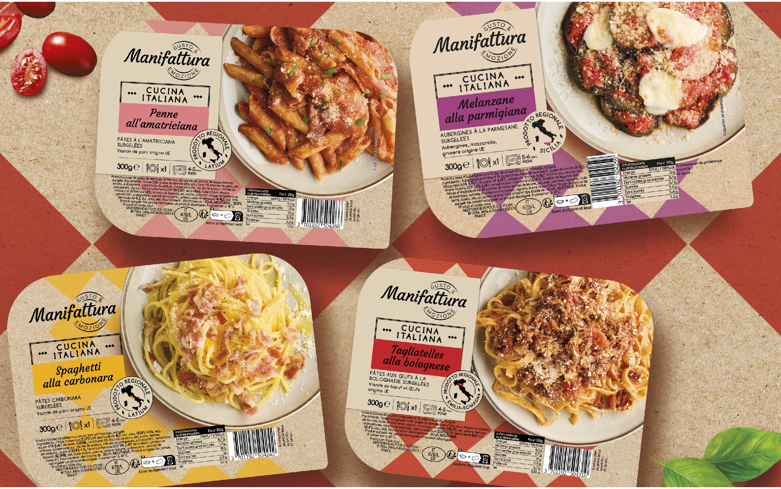Pour accompagner la refonte de l’identité de marque Manifattura, nous avons imaginé l’identité de la nouvelle gamme de plats cuisinés : Cucina Italiana.